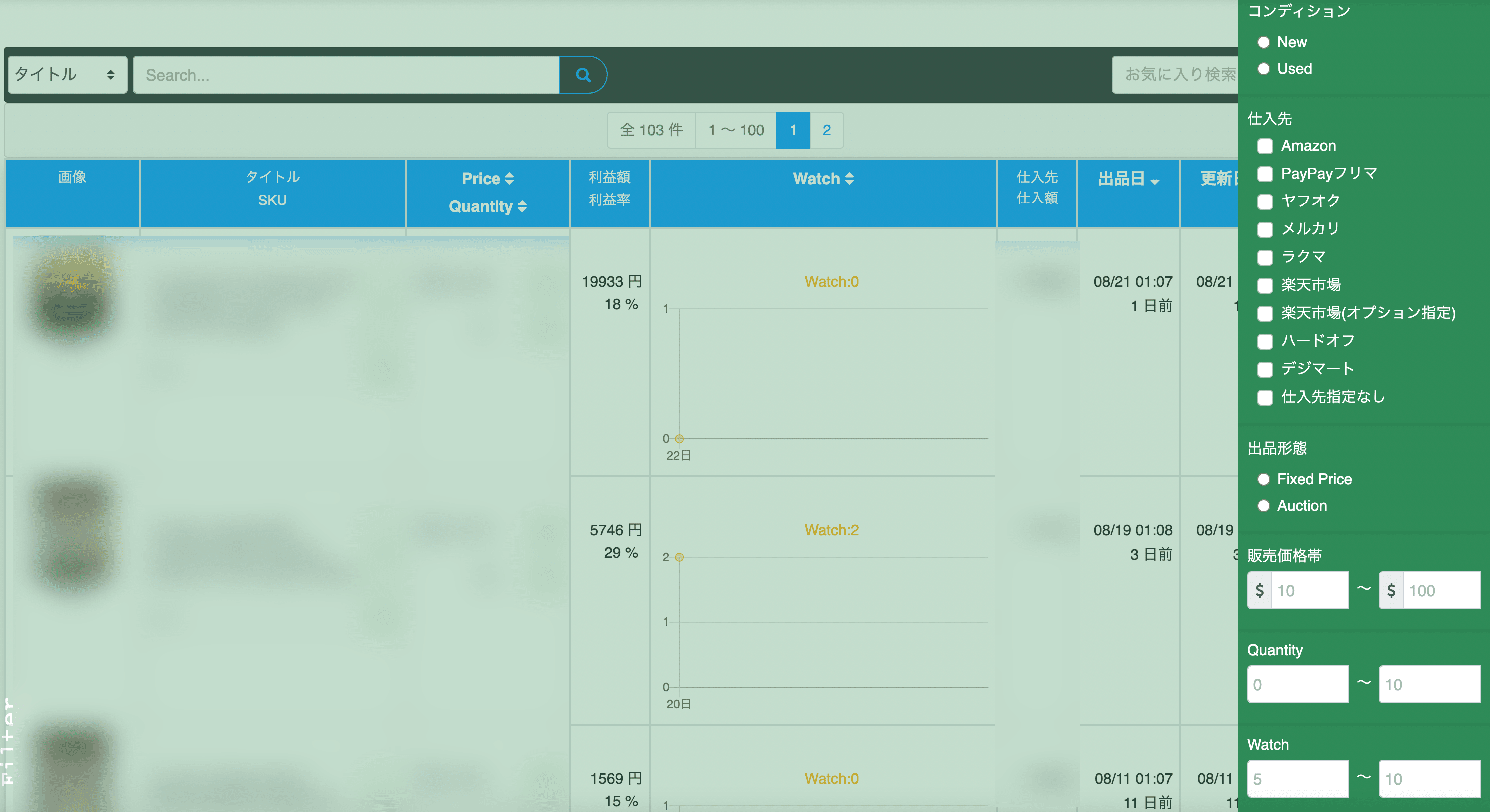 最初にじっくりとモノダスを研究して利益の計算式を入れるだけで、